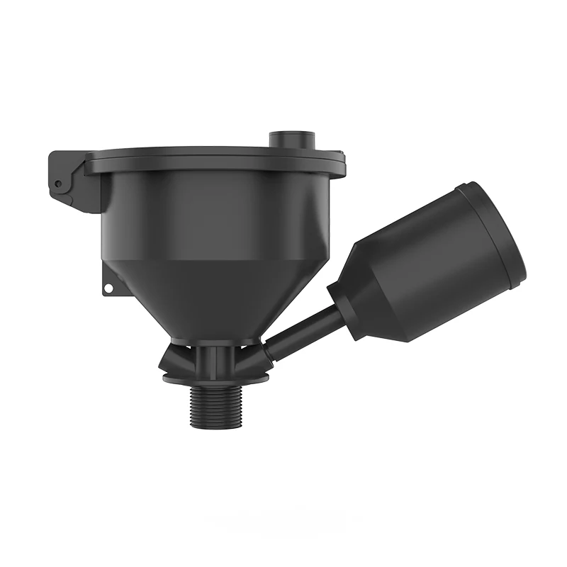 قطر داخلی قیف 130 میلی متر و قطر خارجی آن 158 میلی متر است. از طراحی پوشش بالایی ضد نشتی استفاده می کند. مواد اولیه به صورت تزریقی از مواد ضد الکتریسیته ساکن وارداتی، مجهز به پوشش درزگیر و طراحی قیف فیلتر ضد پاشش ساخته شده است. برای اطمینان از ایمنی مایع زباله مهر و موم شده، می توان به صورت اختیاری یک شیر در زیر قیف نصب کرد. روکش بالایی از نوع وزنه تعادل می باشد. هنگامی که فشار داخلی به 100Pa رسید، پوشش بالایی به طور خودکار باز می شود تا گاز خروجی تخلیه شود تا از انفجار و احتراق خود به خودی جلوگیری شود. هنگامی که فشار کمتر از 50Pa باشد، پوشش به طور خودکار بسته می شود.